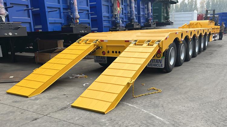 TITAN uses the Q460C high strengthen steel to produce the 6 axle low loader trailer. The yield strength of Q460C steel is ≥620Mpa, more durable and stronger than ordinary steel, and its loading capacity is 5 times more than the low loader trailer which adopt Q345 steel.