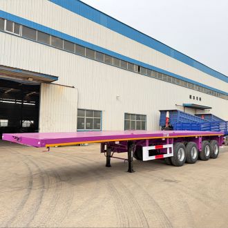 Flatbed semi trailer is commonly used to transport various bulk cargoes and containers, 40ft container flatbed semi trailer can transport 1×40ft or 2×20ft container.